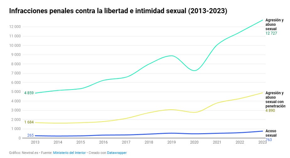 “Negli ultimi vent’anni, la Spagna ha implementato strumenti, attivato servizi, sviluppato leggi e protocolli e investito attraverso numerose organizzazioni per affrontare la violenza sessuale, il cui numero di denunce non ha smesso di crescere. Allo stesso tempo, persiste un sommerso che le istituzioni stimano intorno al 90%: ciò significa che lo Stato è a conoscenza solo di un’aggressione ogni dieci”, ha scritto Vallés.
