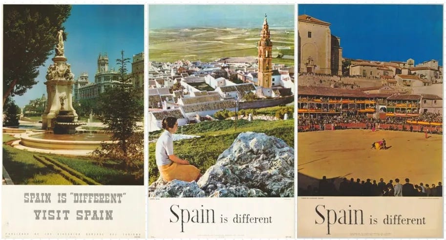 La Spagna è diversa arriva oggi in libreria. In questa newsletter spiego da dove viene questo titolo e perché mi sembra così calzante, con la buona pace di Franco e compagnia bella.